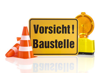 hinweisschild zur baustellenkennzeichnung vorsicht baustelle